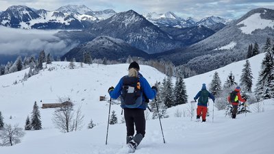 Allerdings gilt es immer, die aktuelle Lawinenlage zu prüfen! Den Lawinenlagebericht für Bayern findest du unter diesem Link: Lawinenlage BayernLeichte Schneeschuhtouren, wie die oben vorgeschlagenen, kannst du üblicherweise bei Lawinenwarnstufe 1 und 2 gehen. Wenn die Schneeschuhtour etwas anspruchsvoller wird und in steileres Gelände führt, sollte die übliche Lawinenausrüstung (LVS, Sonde, Schaufel) immer dabei sein und natürlich musst du dann auch wissen, wie man diese nutzt.