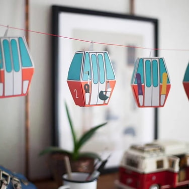 - 24 Gondeln zum selbst befüllen- Jede Kabine ist individuell gestaltet- Größe einer Gondel: H 11 x B 6 cm- Inklusive Schur zum Aufhängen- Designed im Allgäu- auf zertifiziertem Naturpapier in Bayern gedruckt