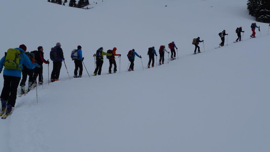 Wir haben an unserem langen Wochenende einige tolle Touren gemacht. 36 Teilnehmer der Ortsgruppe waren unterwegs mit Ski und mit Schneeschuhen. Trotz Sturm waren wir jeden Tag unterwegs und haben verschiedene Gipfel "gestürmt".