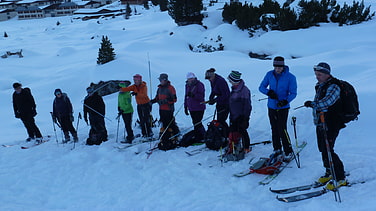 27 Schneeschuh- und Skitourengeher des Dachauer Alpenvereins verbrachten drei Tage auf der Lizumer Hütte in den Tuxer Alpen. Gemeinsam wurde am ersten Tag ein Lawinentraining absolviert. Das Foto zeigt die Teilnehmer bei einer Übung mit der Lawinensonde. Die nächsten Tage haben die Wintersportler in verschiedenen Gruppen tolle Touren gemacht und einige Gipfel „gesammelt“.