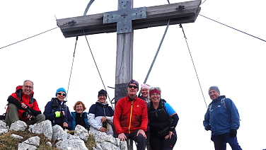 Für die Wanderer der Ortsgruppe ging es am Samstag, 12.04.25 in den Isarwinkel, um von Jachenau aus den Hirschhörnlkopf zu erklimmen. Das Sonnental machte seinem Namen alle Ehre und bei frühsommerlichen Bedingungen startete die Tour entlang der Großen Laine. In vielen Serpentinen ging es später über einen Steig bergauf bis zur Almfläche der Pfundalm. Von dort waren es dann noch wenige Höhenmeter bis zum Gratrücken und zum Gipfelkreuz des Hirschhörnlkopf auf 1515m. Der breite Gipfelaufbau bietet eine großartige Rundumsicht Richtung Wetterstein, Karwendel und den Walchensee. Zurück im Tal gab es dann die verdiente Einkehr.
