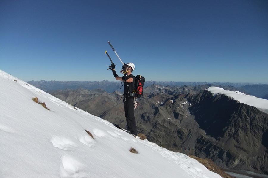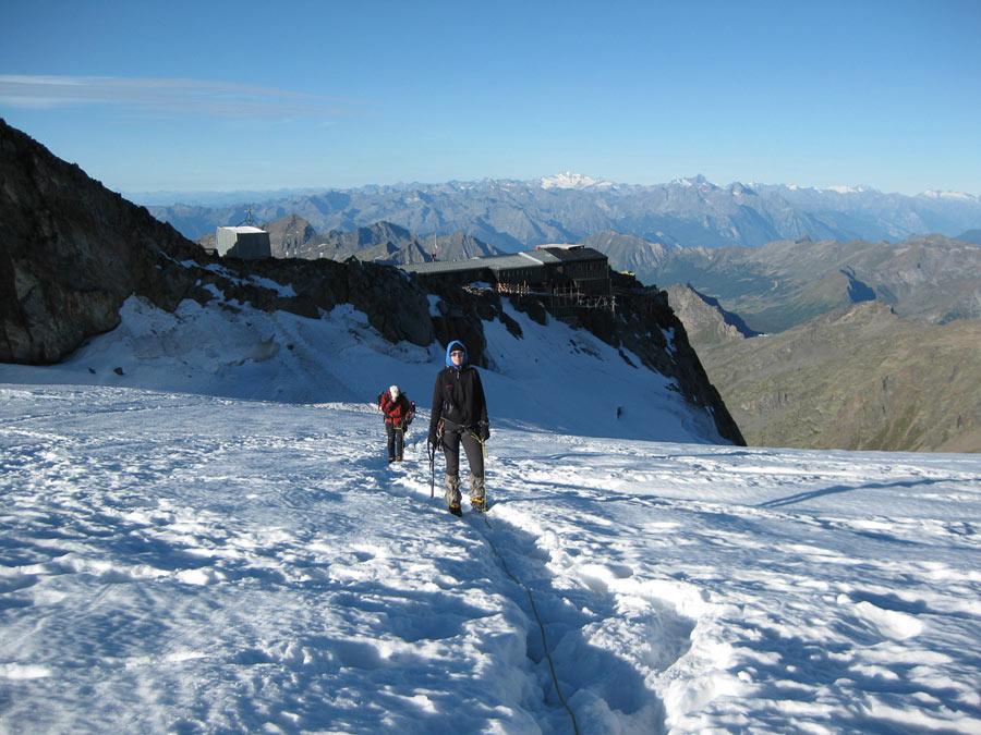 Tourverlauf (jetzt im August): Zermatt - Theodulhütte - Breithorn - Rifugio d´Ayas - Castor - Rifugio Sella - Il Naso - Gnifettihütte - Vincenzpyramide, Balmenhorn, Ludwigshöhe - Gnifettihütte - Signalkuppe - Grenzgletscher - Neue Monte Rosa Hütte - Gornergrat - Zermatt