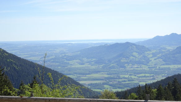 Nach einem kurzen Stündchen Fahrzeit nach Brannenburg führt uns die Tour in schon komplett schneefreie Hänge über dem Inntal. Die Kühe sind noch nicht da, aber die Blumen, Enziane zum Beispiel – in allen Größen. Und die Sonne macht sich bemerkbar, noch ungewohnte Temperaturen. Auf der Rampoldplatte haben wir schon weite Sicht vom Chiemgau bis München und im Süden bis zu den noch tief verschneiten Tauern. Nach einer längeren Querung und dem etwas glitschigen Felsaufstieg zum Grat der Hochsalwand wird die Sicht noch besser und man hört die Wendelstein-Zahnradbahn auf der anderen Talseite rattern. Bei der Einkehr tragen wir kurzerhand eine Biertischgarnitur von der glühheißen Sonnenterrasse auf die schattige Seite der Schlipfgrubalm und erholen uns mit Blick auf die Pferdeweide und unter dem Rauschen riesiger Buchen. Ein schöner Auftakt zum Bergsommer!