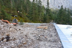 Die Hinterfüllung hinter der Hütte konnte bis auf einen kleinen Streifen fertiggestellt werden.