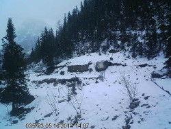 Um die Sicherheit der Handwerker nicht zu gefährden, wurde am Mittwoch letzter Woche erst mal der Abstieg ins Tal angeordnet. Wie sich herausstellen sollte, eine weise Entscheidung, denn bis Freitag fiel über ein halber Meter Schnee, der am Samstag und Sonntag dank vorübergehender Erwärmung glücklicherweise wieder etwas abgenommen hat.