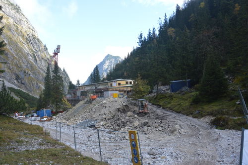 Die Bautätigkeiten in der letzten Woche litten erheblich unter dem intensiven Niederschlag im Wettersteingebiet. In erster Linie machte sich das dadurch bemerktbar, dass einige der Hubschrauberflüge entweder gar nicht oder nur in erheblich geringerem Umfang als geplant durchgeführt werden konnten.