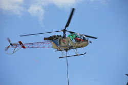 Das ganze Baumaterial und auch der Beton muss auf die Baustelle geflogen werden.Hier sind zum Teil ganz schön dicke Brummer, aber auch filigrane "Lufthüpfer" unterwegs, die den schier unstillbaren Hunger der Baustelle nach Nachschub bedienen müssen.