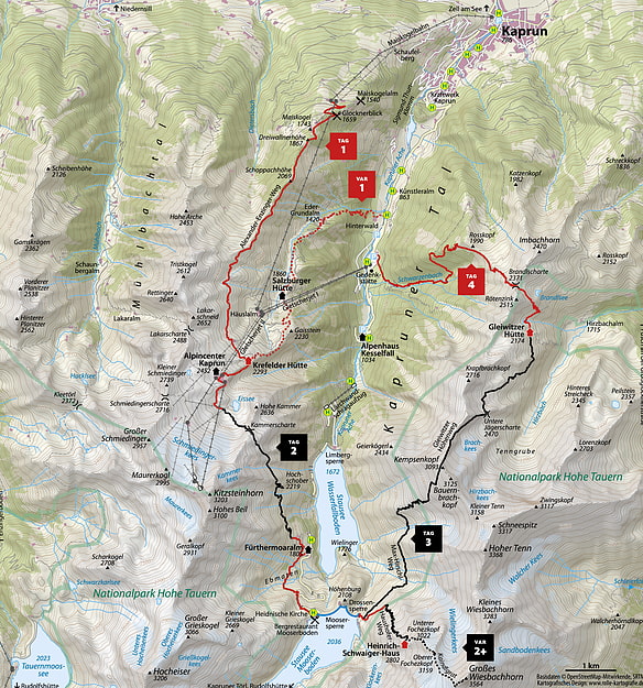 L’itinerario di quattro giorni sui Tauri porta in senso antiorario intorno alla Valle di Kaprun facendovi conoscere il fantastico mondo dei ghiacciai degli Alti Tauri. L’itinerario si rivolge agli amanti della montagna che abbiano esperienza e sicurezza e amino la solitudine dei rifugi più remoti.