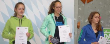Am Sonntag standen dann die Wettkämpfe im Speed an. Hier geht es darum, eine fest definierte Kletterroute so schnell wie möglich zu bewältigen. Mit affenartiger Geschwindigkeit springen die Kletterer dabei die Wand hinauf. Hier machte Magdalena Schmidt erneut einen sehr guten zweiten Platz. Anna Lechner, die klare Favoritin, rutschte in der Vorentscheidung unglücklich aus der Wand und musste sich mit dem für sie eigentlich ungenügenden dritten Rang zufrieden geben. Ihrer Schwester Lara Lechner (Wettkampfkader 2) gelang es mit ihrem harmonischen Kletterstil, einen für sie sehr guten dritten Platz in der Speed-Disziplin zu machen. Der Wettkampf war mit einer Dreierwertung verbunden. Das Ergebnis konnte sowohl bei der Bayerischen als auch bei der Deutschen Gesamtrangermittlung eingebracht werden. Die Jugend-A-Wertung galt darüber hinaus für das deutsche Gesamtergebnis in der Erwachsenenklasse. Damit konnte sich Romy mit ihrem Ergebnis gleich drei weitere Podiumsplatzierungen sichern. Sie belegte den zweiten Platz in der Bayerischen Jugend B, ebenso in der deutschen Jugend B, und hangelte sich in der deutschen Damenwertung sogar auf den ersten. Damit hat sie sich eine sehr solide Position für das Gesamtergebnis sowohl auf der Landes- als auch auf der Deutschlandebene geschaffen. Ihre Wettkampfkader-1-Kollegin Leonie Lochner belegte den dritten Platz im Bayerischen Speed. Florian Hecht schaffte in derselben Wertung einen sehr guten zweiten Rang. Damit können die Trainer des Wettkampfkaders 1, Fabian Werner, Thomas "Tomtom" Lindinger und Samuel Adolph, mehr als zufrieden sein.