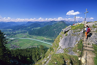 Das Kranzhorn ist ein einfach zu erreichender Gipfel direkt über dem Inntal. Im Aufstieg geht es über schöne Blumenwiesen und die Kranzhornalm, eine beliebte Einkehr, bietet sich zur Rast an. Oben am Gipfel warten dann nicht nur eine kleine Kapelle, sondern auch zwei Gipfelkreuze und ein prächtiger Ausblick.
