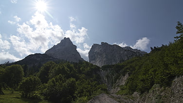 Der Anstieg durch das Griesener Kar ist nicht besonders schwierig und vermittelt ein hochkarätiges Landschaftserlebnis. Doch darüber, oberhalb der kleinen Fritz-Pflaum-Hütte, wird's einigermaßen anspruchsvoll. Dieser ausgesetzte Routenabschnitt verlangt ein wenig Klettergeschick, Trittsicherheit und vor allem Schwindelfreiheit.