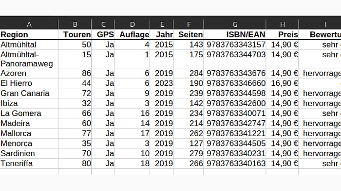 1/1 Erstellt von Michael Rubrik: Bücher, Karten, Fotografie und anderes 12 Rother Wanderführer +GPS, Sammlung, Kanaren, Balearen, Azoren 12.02.2026 / 21:23 Uhr 80333 München Rother Wanderführer inkl. GPS, SammlungWanderführer für die Regionen Kanaren, Balearen, Azoren, AltmühltalDie meisten Titel wurden gekauft 2019 und 2020, zwei wurden als Mängelexemplar gekauft und haben einen seitlichen Stempel "Mängelexemplar".Zustand: Alle gut, sehr gut, aber die meisten sind wie neu.Lieferumfang: 12 Wanderführer, sicher verpackt. Michael kontaktieren Beitrag melden Eintrag in der Kategorie "Bücher, Karten, Fotografie und anderes" anzeigen
