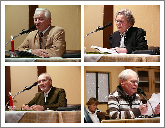 Der zweite Teil war das traditionelle Adventssingen. Wie immer von Wiltrud Bauernfeind und Emmi Daurer professionell vorbereitet. Durch das Programm führte Hilde Weiß. Die Stubenmusik, der Dreigesang und die fünf Sängerinnen lockerten die heiteren, aber auch besinnliche Wortbeiträge der Vortragenden am langen Nachmittag auf. Der Saal war bis zum letzten Platz gefüllt, während der Darbietungen war es mucksmäuschenstill. Ein sicheres Zeichen für die hohe Qualität des Programms. Der Beifall des Publikums war entsprechend langanhaltend.