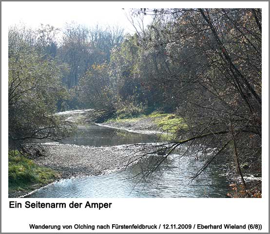 Ausgangspunkt war der Bahnhof von Olching. Von dort führte der Weg zunächst an der Bahnstrecke entlang in westlicher Richtung. Bald ging es in südlicher Richtung weiter durch die herbstlich bunt gefärbten Amperauen nach Emmering. Mittlerweile war es Mittag und damit Zeit zur großen Einkehr beim "alten Wirt". Der Tourenbegleiter hatte vorsorglich Tische reservieren lassen. Nach der ausgiebigen Rast fiel der Aufbruch ein bißchen schwer, denn inzwischen regnete es.