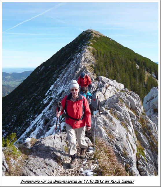 Die Grödeln sollten vorsorglich im Rucksack sein! Es hatte die Tage vorher schon den ersten Schnee gegeben. Aber die Forststraße vom Spitzingsattel (1127 m) zur Oberen Firstalam war aper. Der Föhn hatte inzwischen gute Arbeit geleistet! Auf dem Westhang zum „Wintergipfel“ (1600 m) – dem Ziel, das für die Tour ausgeschrieben war – querten wir noch ein paar wenige Schneeflecken.