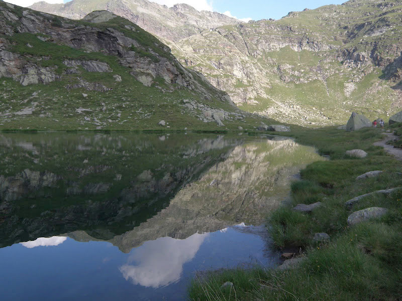 Mittwoch, 25.07.: Ab Oberkaser führte uns der Weg vorbei an der Kaser und Pfitscher Lacke zu den mystischen Schalensteinen, die bezeugen, dass hier vor ca. 6000 Jahren schon Ansiedlungen waren. Nun ging's steiler bergan zur Taufenscharte, 2230 m, dann folgte ein ebenso steiler Abstieg. Ab hier wanderten wir noch ein Stück auf dem Meraner Höhenweg bis zum Hochganghaus, 1839 m.