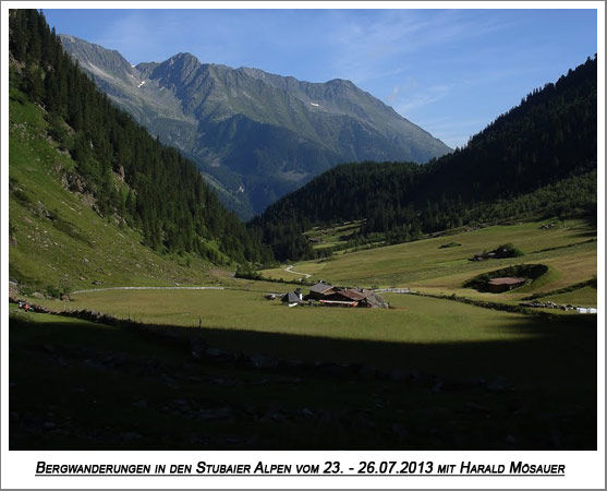 Am Anreisetag wanderten wir vom Parkplatz Grawaalm (1590 m) vorbei an der Sulzenaualm über den Wilde-Wasser-Steig zur Sulzenauhütte (2192 m). Am Nachmittag unternahmen wir noch einen kleinen Abstecher zur Blauen Lacke.