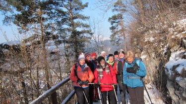 Die Anzeige verrät vierzehn Grad minus, die Luft ist schneidig, die Sparchenstiege mit über dreihundert Stufen sorgt fürs „warm up“, danach beginnt eine Tour für alle Sinne. Die Sonne wärmt die feuchten Nasen, beim Veitenhof riecht es nach Heu und Kuhstall, das weckt Erinnerungen an den sommerlichen Käsekauf. Der Pfandlhof vermittelt winterliche Stille, alle Bäche haben sich zu Eisformationen verwandelt, und bei der Antoniuskapelle zeigt sich das bekannte „Postkartenmotiv“.