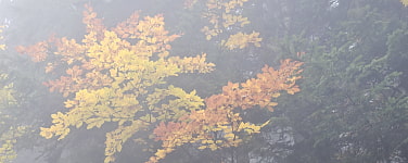 das bunte Herbstlaub im Nebel