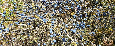 Leuchtende Schlehensträucher säumen den Weg