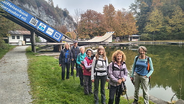 Nach einer Pause geht es weiter zum Gfaller Stausee, der Nebel hat sich aufgelöst, wir können die herbstliche Landschaft in vollen Zügen genießen. Der Aufstieg zum Nußlberg, wo sich eine Kapelle befindet, ist mit religiösen Tafeln versehen, die quasi eine Kurzfassung des Neuen Testaments darstellen. Der Abstieg Richtung Hechtsee - nach ausgiebiger Gipfelrast - ist dann ein regulärer Kreuzweg.