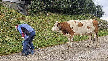 Kaum passieren wir die Kuhherde am Parkplatz bei der Ackernalm (einige sind sehr neugierig), nimmt uns das tolle Bergpanorama gefangen: In mehreren Schichten ziehen sich Wolkengebilde durch die Gebirgslandschaft. Im Aufstieg Richtung Steinerkaseralm sehen wir Pilze wie den Schopftintling (auch Spargelpilz genannt), später auch Murmeltiere, die sich durch ihr Pfeifen verraten. Weiter oben eine Gruppe von Gämsen. Wir genießen die Ruhe und die super Fernsicht.Nach der Gipfelbrotzeit machen wir uns an den Abstieg. Dabei holen wir Richtung Osten etwas weiter aus: Durch die Schnittlauchrinne zur Wildenkaralm (verschiedene Enzianarten) und dann in einem Bogen zurück zur Ackernalm.Unterwegs wird es immer sonniger und wir lassen die schöne Wanderrunde, auf der wir heute kaum jemanden antreffen, auf der Terrasse der Ackernalm bei Kaffee und Kuchen ausklingen.
