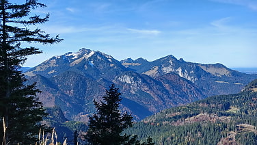 Als wir aus dem Inntal Richtung Tatzelwurm abbiegen, wird es grau. Wir parken in Regau, starten rechts auf den Forstweg und schon nach wenigen Höhenmetern sind wir über den Wolken in der Sonne…. ein magischer Moment. Wieder rechts zieht ein schmaler Pfad über den steilen Südhang durch lichten Wald hinauf. Schnell sind wir aufgewärmt, die Aussicht wird immer besser. Auf dem Gipfel sitzen wir auf Holzbalken und genießen in Ruhe das grandiose Panorama. Im Osten die Berchtesgadener und Loferer Steinberge, gegenüber der Kaiser über dem Inntal, am Horizont die schneebedeckten Zentralalpen. Nach der Brotzeit wandern wir weiter auf dem Westgrat, nochmal mit traumhaftem Blick auf Brünnstein, Hinteres Sonnwendjoch, Alpenvorland. Wir passieren die kleine Dreifaltigkeitskapelle, dann geht´s rasant rutschig und wurzelig abwärts. Jeder Schritt erfordert volle Konzentration. Alle sind froh, als wir heil am malerisch gelegenen Bichlersee ankommen.Zum Abschluß kehren wir im gemütlichen Traditionsgasthof-Hotel Keindl in Niederaudorf ein.Wir danken Rudi für die landschaftlich herrliche Rundtour auf anspruchsvollen Steigen bei prächtigem Herbstwetter.