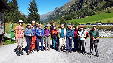 1. TagBei bestem Wetter begrüßt uns das Pitztal, ein Paralleltal zum Ötztal und Kaunertal. Wir parken in Mandarfen bei der Riffelseebahn und erkunden das Tal. Unsere erste Wanderung führt uns über die Taschach Alm und Mittelberg zur Gletscherstube auf 1917 m. Hier gehen wir noch bis zum Wasserfall und werden durch die Gischt abgekühlt. Kurz eine innerliche Erfrischung in der Alm, dann geht es nach ca 400 Hm zurück zum Parkplatz und zum Hotel Bergland. Hier haben wir HP gebucht und werden vom vorzüglichen Essen überrascht.