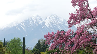Tag 2: Bei leichtem Regen streifen wir in Meran zunächst entlang der Promenade und durch die Laubengasse, bevor wir uns auf dem Tappeiner Weg hoch schlängeln zum Aussichtspunkt über die Stadt und weiter zum Pulverturm. Abwärts geht‘s zur Promenade zur Gilfklamm und auf der anderen Seite der Passer auf dem Sissiweg wieder zurück in die Stadt.Nachmittags wandern wir zu den Gärten von Schloss Trauttmansdorff - von der Vielzahl der Blüten dort sind wir stark beeindruckt.