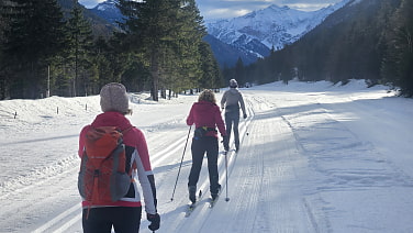 Heute sind wir die ersten Läufer am Parkplatz Hinterriss. Auf dem Programm steht die Karwendelloipe in die Eng - die sogenannte Kaiserloipe. Alle sind motiviert, denn wir wissen, die Strecke erfordert Kraft und Kondition. Während der Tour gibt es keine Einkehrmöglichkeit, so dass wir gut ausgerüstet an den „Start“ gehen. Bis jetzt sind wir die einzigen Langläufer- also: „ Los geht's!“Von Anfang an führt die Strecke durch die wunderschöne Bergwelt des Engtals. Die Loipe ist bestens präpariert, etwas vereist und neben uns plätschert der Rissbach im Sonnenschein. Weil die Straße zum Großen Ahornboden im Winter für Autofahrer gesperrt ist, laufen wir fernab von jeglichem Lärm und können die entspannte Stille der Natur genießen. An den Hagelhütten verschnaufen wir etwas und machen eine kurze Pause. Weiter geht es stets bergauf. Der „Große Ahornboden“ liegt verschneit vor uns und wir erreichen die Eng Almen, die uns zu einer Brotzeitrast einladen. Die Hälfte der Strecke haben wir geschafft und wir stärken uns im strahlenden Sonnenschein umgeben von verschneiten, majestätischen Bergriesen. Was für ein wunderbarer Augenblick.Zurück geht es auf gleicher Strecke, jedoch nicht ganz so mühsam, denn es geht stets bergab und jetzt ist Geschicklichkeit auf den Abfahrten gefragt. Alle kommen unversehrt und glücklich am Ausgangspunkt an.Nun steht nur noch die Einkehr in den Gasthof zur Post auf dem Programm. Wir belohnen uns mit köstlichen Speisen und wieder geht ein gelungener Langlauftag zu Ende.
