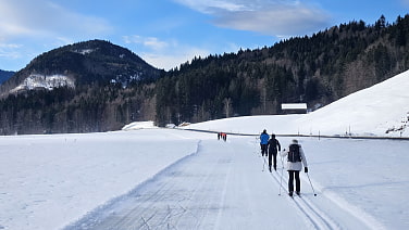 War es auf der Fahrt nach Tannern noch stark bewölkt, klart es im Tagesverlauf zusehends auf – auf dem Rückweg am Nachmittag laufen wir unter strahlend blauem Himmel. Vom Start weg haben wir leichte Plus-Grade, die Loipe ist gut präpariert.