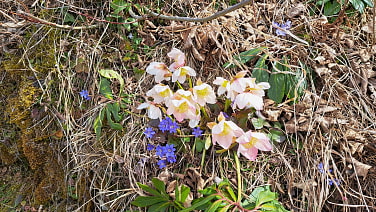 Los geht´s am Parkplatz Kaiserlift in Kufstein-Sparchen den Schildern in Richtung Weinbergerhaus folgend. Wir passieren die Duxeralmen und einige nette Attraktionen wie den Masten mit den alten Wanderstiefeln und das Schmetterlingskletternetz. Doch das Highlight kommt erst je höher wir steigen – Berghänge übersät mit filigranen Schneerosen inmitten von Frühjahrsblühern. Was für eine Pracht!Das Weinbergerhaus 1273m ist geschlossen, doch Tische und Bänke auf der Terrasse bieten sich für unsere wohlverdiente Brotzeit an. Noch ist es föhnig-warm, doch die Sonne verschwindet hinter Wolken, ein Wetterumschwung ist angesagt. Also noch schnell ein Gipfelfoto auf dem Brentenjoch 1204m vor der eindrucksvollen Kulisse des Wilden Kaisers!Abstieg zum Aschenbrennerhaus 1135m, das sehr voll ist, doch ein Getränk gönnen wir uns, dann wandern wir zügig abwärts, denn das Unwetter zieht ins Inntal herein. Trocken erreichen wir die Autos, bald setzen heftiger Sturm und Regen ein……Glück gehabt….Wir danken Rudi für die herrliche Rundwanderung mit dem faszinierenden Naturerlebnis der Schneerosenblüte.