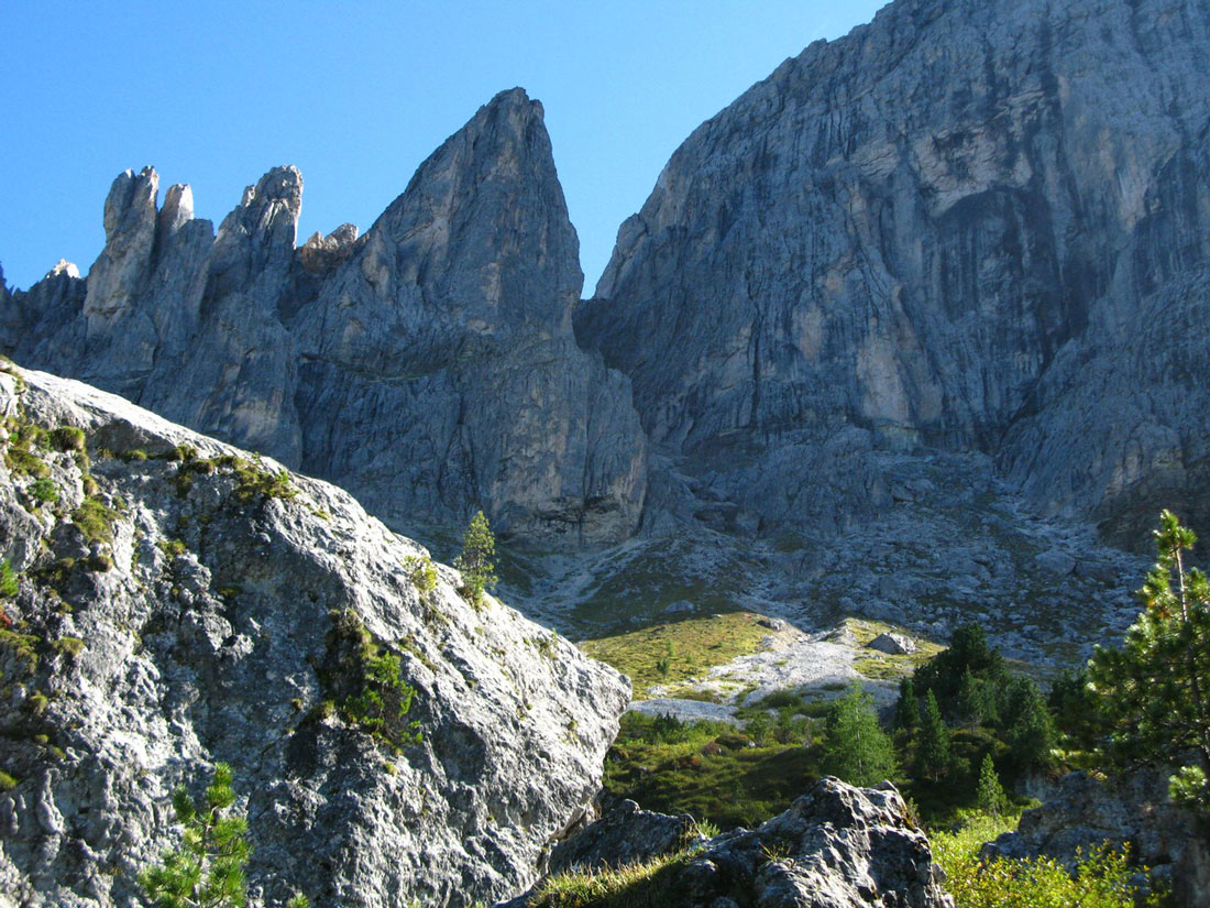 06.09.2011 Da schönes Wetter angesagt ist, machen wir die Peitler-Umrundung. Vom Würzjoch führt uns ein schöner Wanderweg entlang des Peitlerkofels, dann geht’s hinauf zur Peitlerscharte (2.357 m), die wir Oldtimer langsam, aber stetig, von vielen Jüngeren überrollt, erobern. Oben warten auf uns noch gelber Mohn, einige Edelweiß und eine herrliche Aussicht auf die Aferer Geisler und die Kreuzkofel-Gruppe. Viele Wanderer streben dem Peitlerkofel-Gipfel zu, der sich in Wolken hüllt. Über grüne Wiesen wandern wir zum Göma Joch (2.109 m), wo die Wolken den Blick zu den Pragser Dolomiten und Kreuzkofel Gruppe freigeben, hinunter in die „Steinerne Stadt“. Es kommt einem vor, als hätten Riesen dem Peitlerkofel Stücke aus seinem steinernen Leib gerissen. Herrlicher Blick auf den sich steil auftürmenden freien Gipfel und seine auslaufenden Felsspitzen. Nach einer zünftigen Brotzeit, Wein und Bier geht es zurück zum Würzjoch.