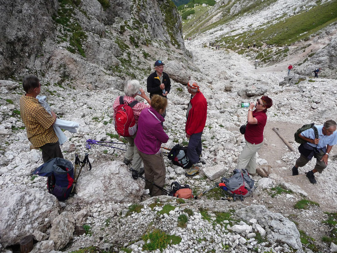 08.09.2011 Ein kurzer Rundwanderweg ist angesagt, wegen der langen Heimfahrt. Vom Pe de Börz auf einem Fahrweg an der Mauerberghütte (2.157 m) vorbei wandern wir hinab zur romantischen Pecol-Hütte, um ein letztes Mal Südtiroler Schmankerl zu genießen. Dann überschreiten wir auf verborgenem Steigerl einen Bergrücken und kommen wieder zu Pe de Börz zurück. Es waren sehr schöne, erlebnisreiche Tage in einer fröhlichen Gruppe mit einem ebenso zu Späßen aufgelegten und fürsorglichen Begleiter