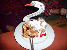 Vom Parkplatz Laubau 706 m schlenderten wir flach auf der Forststraße dem Saurüsselkopf entgegen, er versteckte sich noch hinter der Nebelwand. Bei ca. 1000 m Höhe stießen wir auf den zum Gipfel führenden unmarkierten Steig, und die Sonne begrüßte uns. Der Anstieg wurde steiler und abwechslungsreicher. Kurz vorm Gipfel begegneten uns zwei Senioren. Nun waren wir unter uns auf dem Gipfel 1270 m, der für alle Teilnehmer neu war. Die Täler waren in Wattebausch gehüllt. Der Abstieg erfolgte auf dem Aufstiegsweg. Gute, außergewöhnliche Einkehr im Cafe Windbeutel-Gräfin in Ruhpolding.