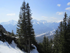 Unsere Wintertour starteten wir in Unterammergau vom Wanderparkplatz Schleifmühle bei sonnigem Wetter aber noch kalten Temperaturen. Ab dem Parkplatz hatte der Aufstiegsweg eine festgefrorene Schneedecke, und so mussten wir sofort die Grödel anlegen. Der Weg ging erst an der Schleifmühlenlaine entlang, deren Wasserfälle sich immer als schöne Fotomotive anbieten. Der weitere Wanderweg zum Pürschling führte uns zur Josefskapelle, einem Kleinod, das von Unterammergauer Bürgern 1989/90 zum Gedenken an die in den Bergen Verunglückten errichtet wurde. Nach einer kurzen Pause wanderten wir in der Sonne, bei immer weicher werdenden Schneespuren, hinauf zum Pürschlinghaus. Auf der windgeschützten Terrasse hielten wir bei herrlicher Aussicht auf die Ammergauer Berge unsere verdiente Mittagsrast. Der Abstieg bei schwächer werdender Sonneneinstrahlung verlief ebenfalls sturzfrei, und so konnten wir zufrieden und gut gelaunt die Heimfahrt antreten.