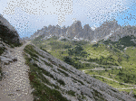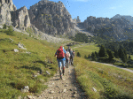 Von Corvara geht es mit der Bahn zur Valun-Bergstation auf 2510 m. Hier beginnt eine lange Wanderung mit herrlichen Ein- und Tiefblicken in das zerklüftete Bergmassiv und das schneebedeckte Panorama der Marmolada. Etwas verstört von dem mit Touristen überfluteten Gipfel des Piz Boè 3152 m verlassen wir diesen nach ein paar Minuten. Über das Rifugio Boè (Bamberger Hütte) 2871 m, den Antersas-Zwischenkofel 2907 m und der Pisciadùhütte 2585 m geht es den versicherten Steig abwärts zum Grödner Joch.