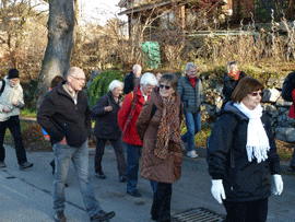 Das Zustandekommen dieser Exkursion lässt keine Kuriosität aus. Die Recherchen reichen von der Idee des regionalen Fernsehens über eine Blaskapelle – ein Trio, das auf diversen Gerätschaften Musik macht – bis schlussendlich zum ehrenamtlichen Heimatpfleger von Uffing. Dieser heimatverbundene Begleiter, Historie und Zeitgeschichte gleichermaßen beherrschend, sorgt bei strahlendem Sonnenschein kurzweilig und amüsant für ein sehenswertes Alternativprogramm im christkindlmarktfreien Uffing. Die gespannte Zuhörerschaft, belustigt schlendernd, wird nach dem obligatorischen Kirchenbesuch an einen reich gedeckten Mittagstisch im "Gasthof zur Post" entlassen. Schaut Euch Eure Heimat an!!