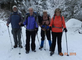 Unser Startpunkt ist der Weiler Am Berg. Das einspurige Teersträßchen ist geräumt, aber doch glatt, und deshalb nutzen wir unsere mitgeführten Spikes. Auf den Traktorenspuren haben wir einen guten Tritt. Nach Verlassen des Waldes genießen wir den Sonnenschein durch eine dünne Schleierwolke. Kurz unterm Gipfel befindet sich ein neuer Bauernhof, hier wird im Sonnenschein und bei Windstille auf einer Bank gevespert. Die Aussicht ist grandios, besonders schön ist der Blick auf den Walchsee. Die Schneehöhe ist für die Schneeschuhe zu gering, deshalb bleiben sie im Rucksack. Der Abstieg führt uns über die Lippenalm auf der Forstraße zurück zum Parkplatz. Den Wandertag lassen wir beim Dinzler am Irschenberg ausklingen.