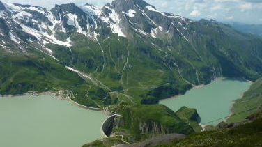 Das Gr. Wiesbachhorn beeindruckt durch seine markante Form. Den Höhenunterschied von 2400 m vom Ferleitental bis zum Gipfel gibt es nirgendwo in den Ostalpen. Werner verschiebt die Tour um einen Tag, weil die Hütte voll belegt ist. Damit bekommen wir ein 20-Betten-Lager für uns alleine. Der Lärchwand-Schrägaufzug ist wegen Renovierung außer Betrieb, deshalb bringen Busse die Besucher hinauf zu den Stauseen. Hier beginnt unser langer und steiler Aufstieg zum Heinrich-Schwaiger-Haus auf 2802 m. Heute ist noch gutes, klares Wetter für viele Fotos, die Aussicht von hier oben ist phänomenal. Zwei Stauseen – Moserboden und Wasserfallboden – liegen uns zu Füßen. Und dann die Rundsicht: zum Kitzsteinhorn, zum Hocheiser, zur Hohen Riffl oder zum Karlinger Kees. Wir nutzen noch die Zeit und gehen hinter der Hütte die steile, seilversicherte Rinne nach oben zum Oberen Fochezkopf. Die Aussicht ist gigantisch und sucht seinesgleichen. Frühzeitig am nächsten Morgen starten wir hinauf. Sehr schade, der Hochnebel verhüllt die Berge der Umgebung. Oben legen wir unsere Steigeisen an und gehen den Kaindlgrat, er ist mit der griffigen Schneeauflage gut zu gehen. Weiter geht es teils weglos und unmarkiert über Blockgelände und über ein 35-Grad-Steilstück. Steinmandl markieren den Aufstieg nach oben. Griffige, abgestufte Platten und Blöcke führen schließlich in den Gipfelbereich, wo uns ein kräftiger Wind um die Nase weht. Der Hochnebel versteckt die Gipfel einschließlich Großglockner, wir können nur erahnen, welch grandiose Aussicht sich uns bieten würde. Nach der Gipfelrast geht es wieder vorsichtig hinunter. Unser Abstieg ist lang, wir müssen bis zu den Stauseen hinunter. Hier verkehren die Busse regelmäßig zum Parkplatz Kesselfall Alpenhaus. Zwei beeindruckende Tourentage bestätigen die Faszination, die von diesem Berg und der vergletscherten Umgebung der Hochgebirgsstauseen ausgeht.