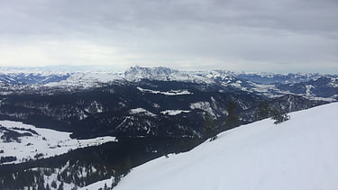 Auf dem Gipfel kann man fernsehen vom Feinsten: in die Lechtaler, die Ammergauer oder zum Wetterstein, aber der kalte Wind verhindert viele Gipfelfotos. Der Auslöser mag keine dicken Handschuhe. Die Abfahrtshänge bis zur Alm sind viel befahren und damit so gut präpariert wie auf einer gewalzten Piste. Nach dem Einkehrschwung fahren wir ein Stück auf der griffigen Forststraße hinab, und das anschließende Stück über freie Almwiesen mit weichem Schnee lässt Vorfreude auf Frühjahrs-Firn-Touren aufkommen. Tourenbegleitung: Hans Kussegg