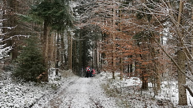 Unsere Nikolauswanderung zum Kloster Reutberg beginnt in Schaftlach. Dorthin bringt uns zuverlässig der Zug der BRB. Eine leichte Wanderung durch eine angezuckerte Voralpenlandschaft läßt Vorfreude aufkommen auf die gemütliche warme Klosterstube. Das Wetter ist der Jahreszeit angemessen, die Gehzeit von ca. 5 km ist kurzweilig und von weitem ist die Kirche von Reutberg zu sehen. Wer nicht wandern mochte, konnte mit dem Auto kommen. Nach dem Mittagessen brachte der Nikolaus für jeden Teilnehmer eine kleine Süßigkeit und vor der Dämmerung ging es wieder zurück.