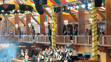 Wie immer haben wir uns um 11.00 Uhr auf der Wiesn am Löwenbräu-Turm getroffen. Da das Wetter für die Terrasse des Schützenzeltes nicht so einladend war, hatten wir Glück und konnten im Inneren des Zeltes einen schönen Platz mit zwei Tischen an der Balustrade auf der Empore ergattern, mit bestem Blick auf die Kapelle und das Treiben und die Stimmung im Zelt. Dort verbrachten wir mit insgesamt 12 Personen einen geselligen und lustigen Tag auf der Wiesn.